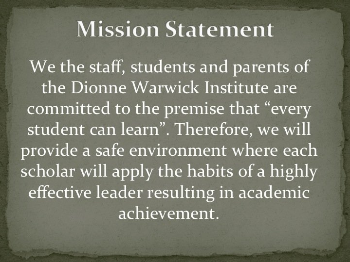 Jersey State Department of Education. In March of 1999, Dionne Warwick Institute became an America’s Choice School, a school with a solid curriculum that honors the basics of reading, writing, mathematics and science. Dionne Warwick Institute is one of the pioneers in the area of elementary economics and entrepreneurship education; it is one of a few schools in the nation developing and implementing this thematic curriculum.